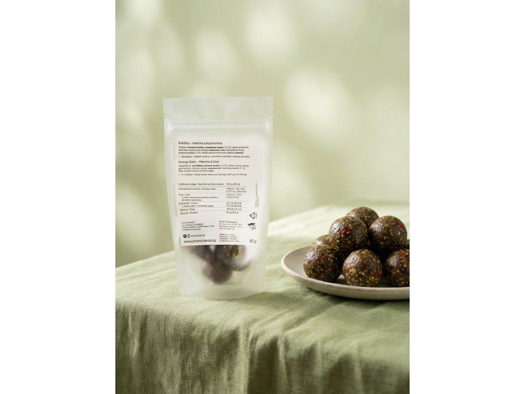 Spojení matchy, mandlového másla a goji v pěti praktických baleních. Každá porce dodá 7 g rostlinného proteinu, je raw, bez přidaného cukru a plná vlákniny.