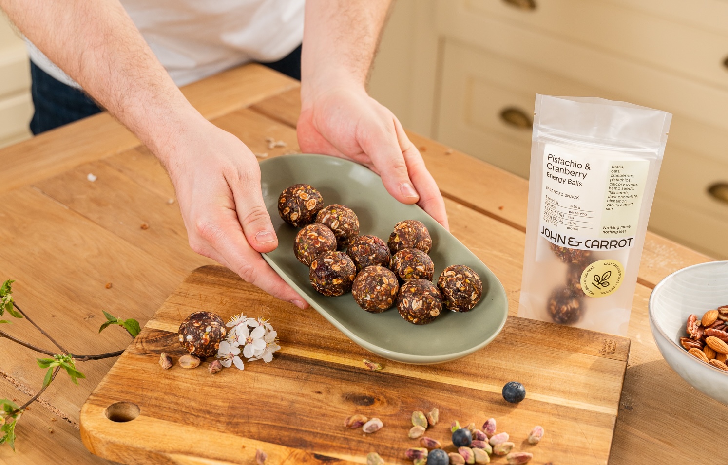 Jogurt nebo rostlinný alternativní základ + John & Carrot granola + ovoce → delší sytost, lepší soustředění, vyváženost.