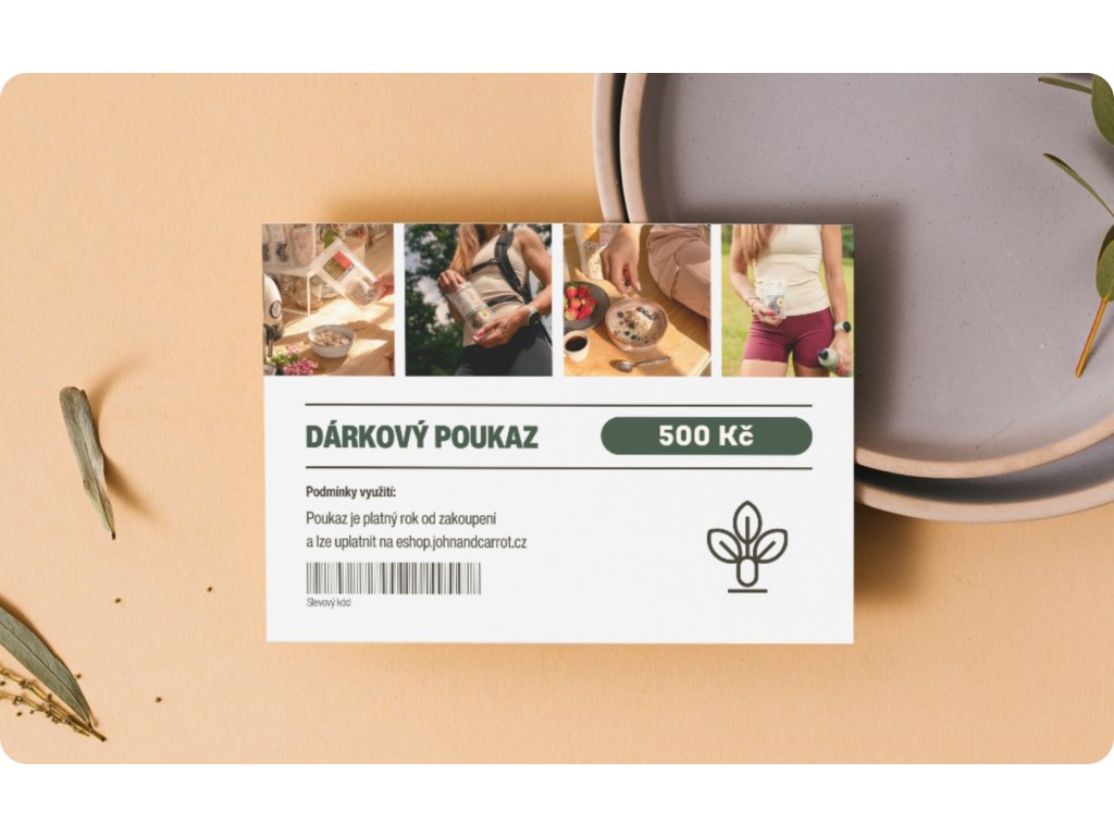 Po zakoupení poukazu Vám dorazí e-mailem VOUCHER s unikátním kódem, který je možné uplatnit na všechny naše produkty. Poukaz je platný půl roku od jeho zakoupení a lze uplatnit na eshop.johnandcarrot.cz.