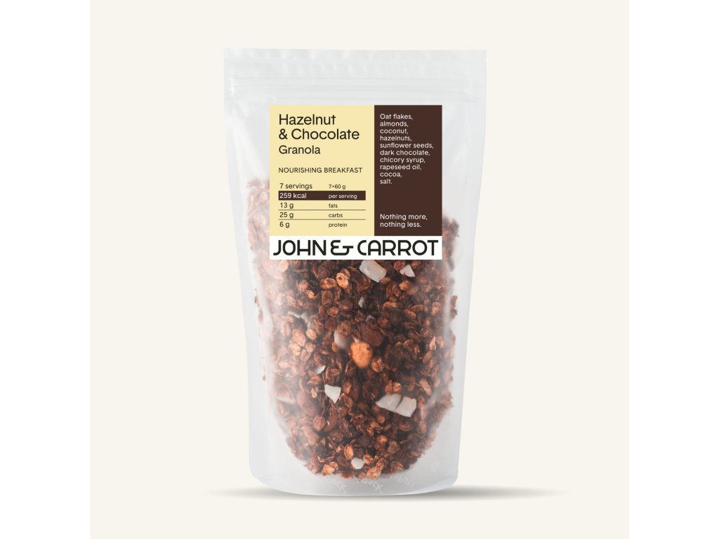 Pro všechny milovníky čokolády, kteří nechtějí dělat kompromisy. Hazelnut & Chocolate Granola spojuje křupavé ovesné vločky, lískové ořechy a kousky hořké čokolády do dokonale vyvážené kombinace chutí.